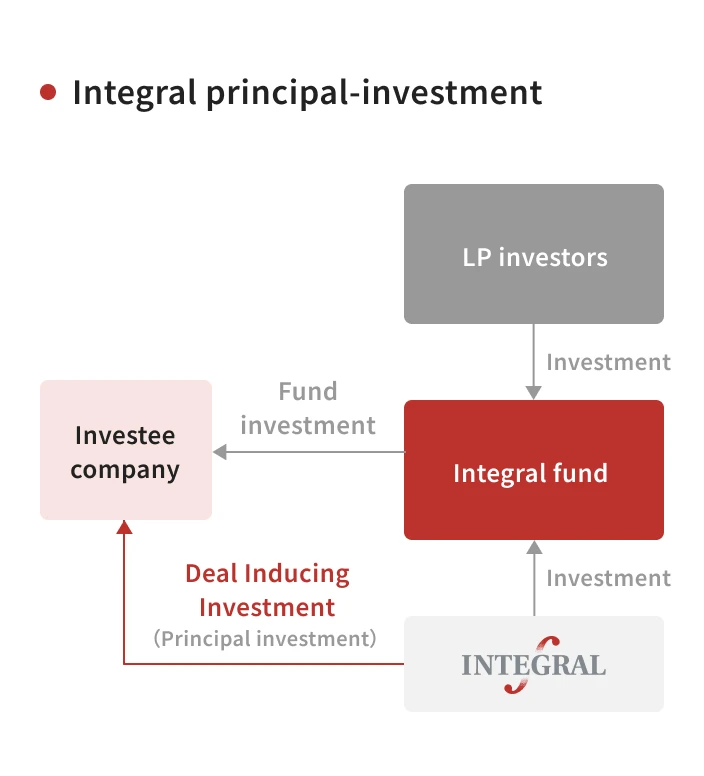 Integral Corporation will make long-term equity investments based on a relationship of deep trust with management, befitting our mission as a "Trusted Investor." We will share the same objectives and time horizon as the management of invested companies, and provide support in both managerial and financial areas.